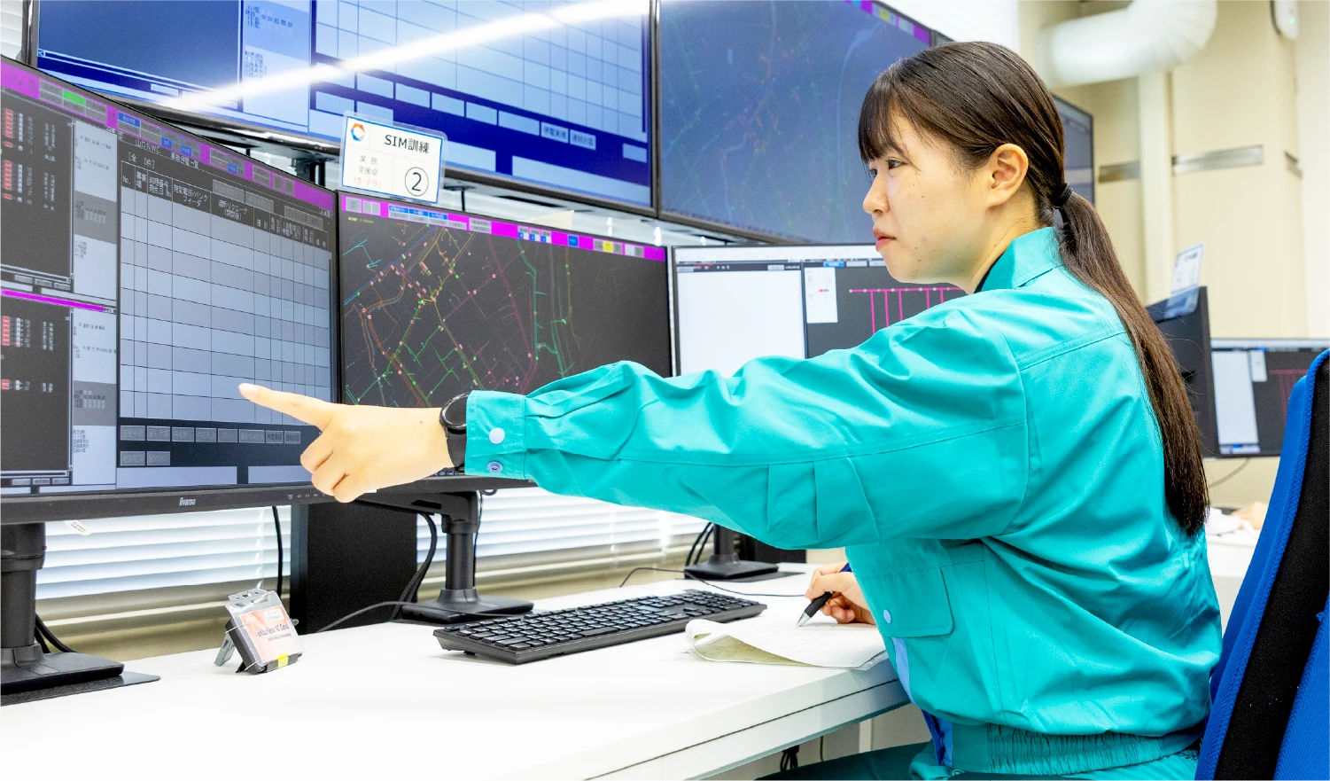 配電系統の運転業務を担当しており、電圧や電流などの監視、作業停電に伴う遠隔操作や指令を行っています。