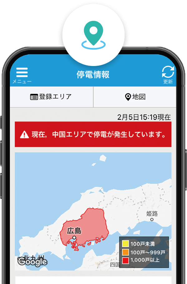 停電情報アプリが活躍します