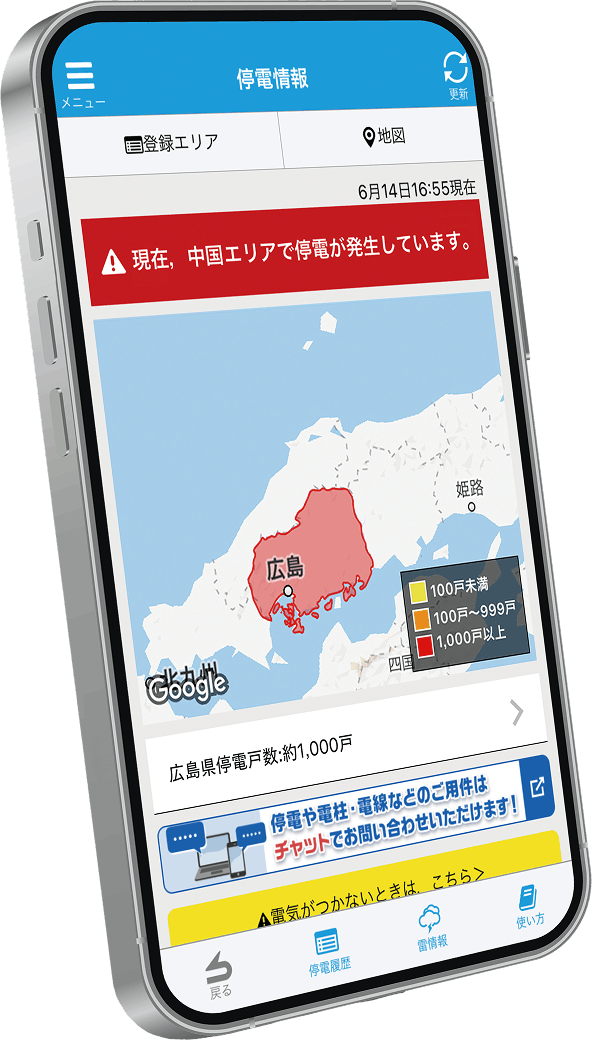 停電情報をいち早くお知らせ! 便利な中国電力ネットワークのアプリ