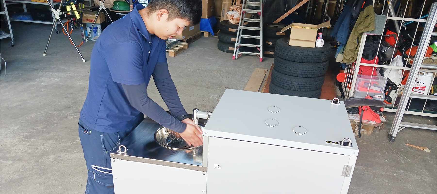 水を浄水して繰り返し使用できる「循環式手洗いユニット」をレンタル提供します。