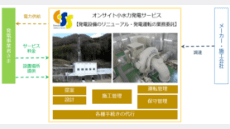 オンサイト小水力発電サービスは、初期投資とメンテナンス費用などお客さまのご負担なく、水力発電設備の改修ができるビジネスモデルです。