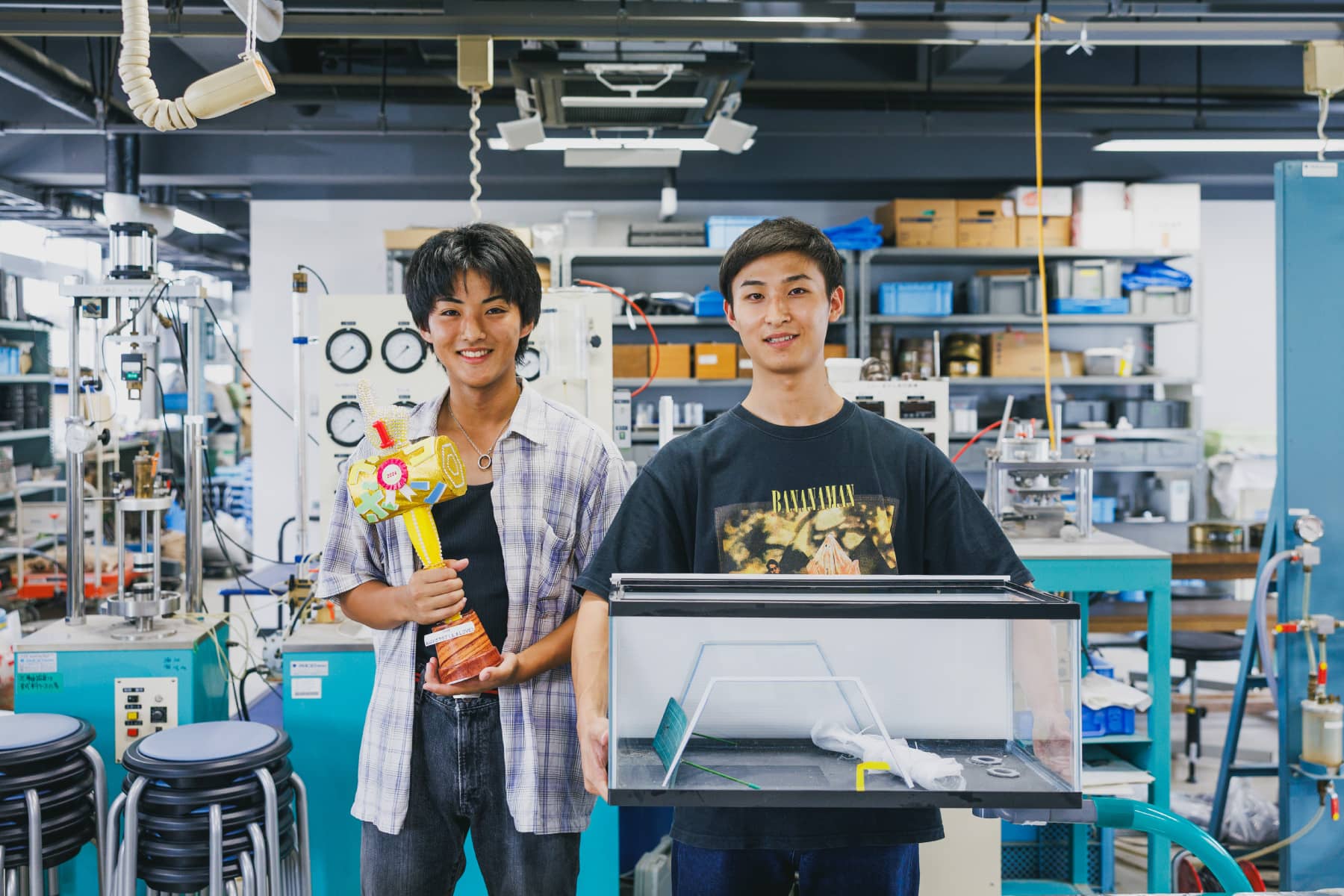 今回は、自然素材を使ったユニークな蓄電池を開発する研究室や土木模型で競うコンテストでNo.1に輝いたチームがいると聞いて、取材を行いました!