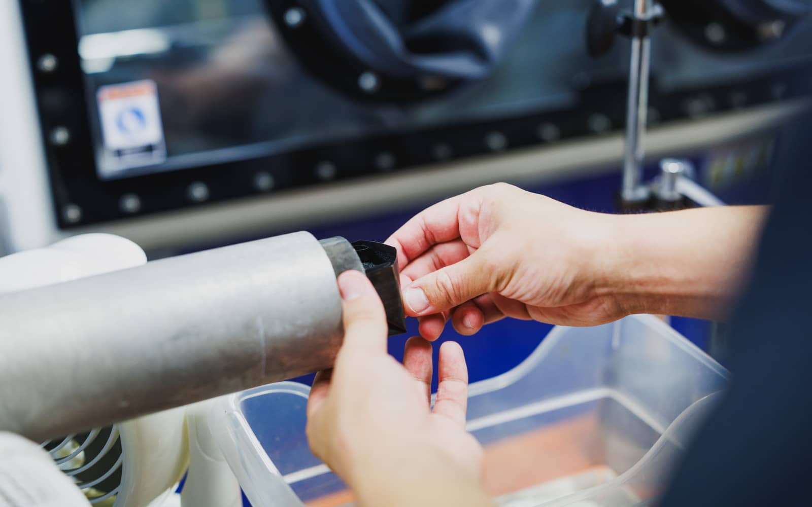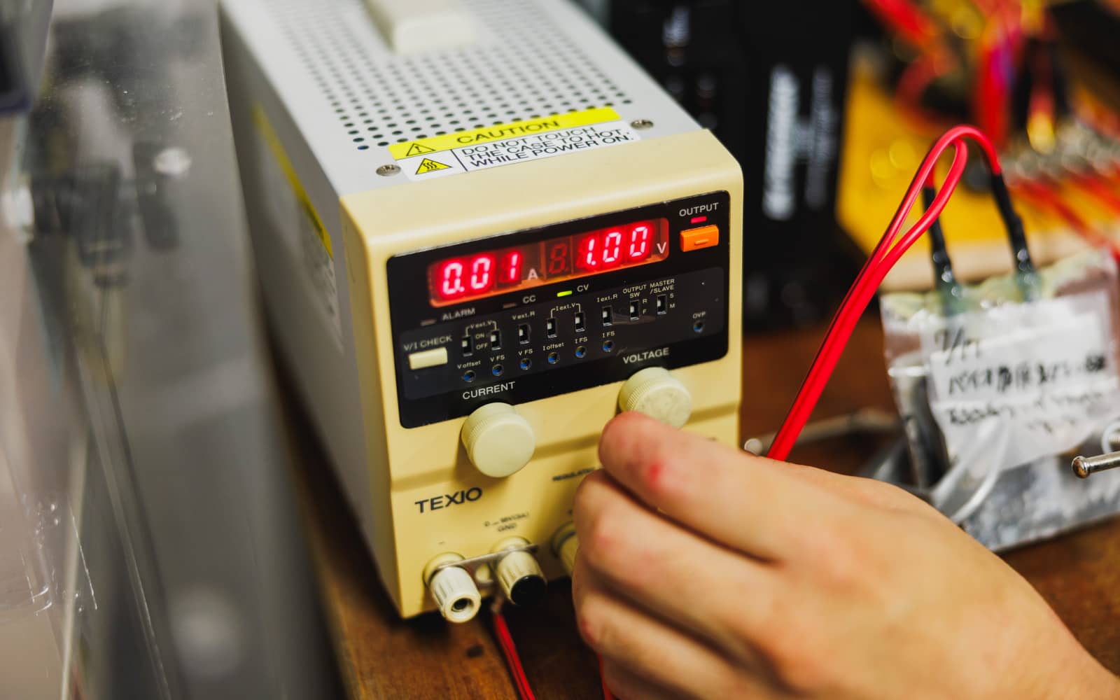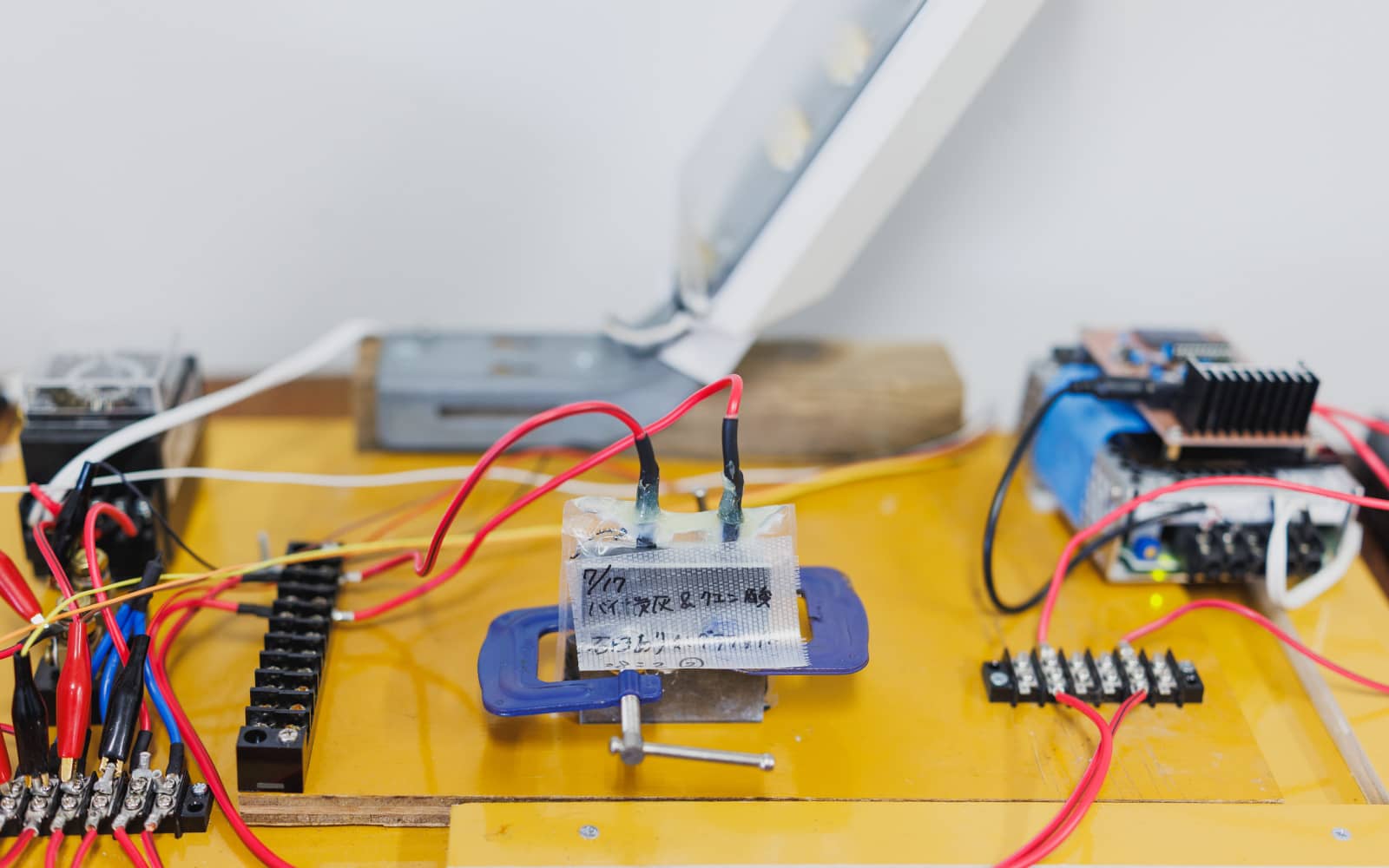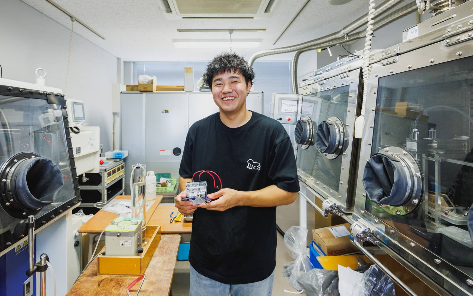 まずご紹介するのは、電気情報工学科の常松さんが中心となって取り組んでいる「木炭蓄電池※」! どこでも手に入る炭を原料にした蓄電池(電気を蓄えて放出できる装置)の研究に没頭する常松さんに、その魅力を紹介してもらいました。