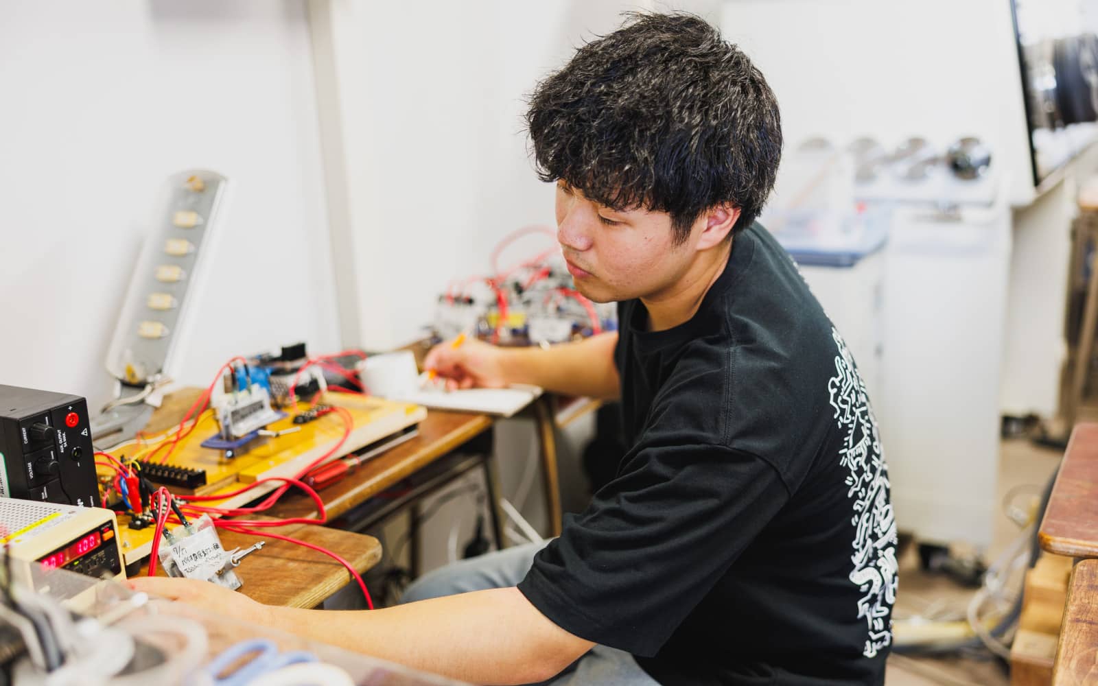 「学んで創れるエンジニア」の育成を掲げる松江高専では、実用的なものづくりをはじめ、ロボコンなどの各種コンテストに参加するなど、日頃からさまざまな取り組みに挑戦する学生たちが集まっています。