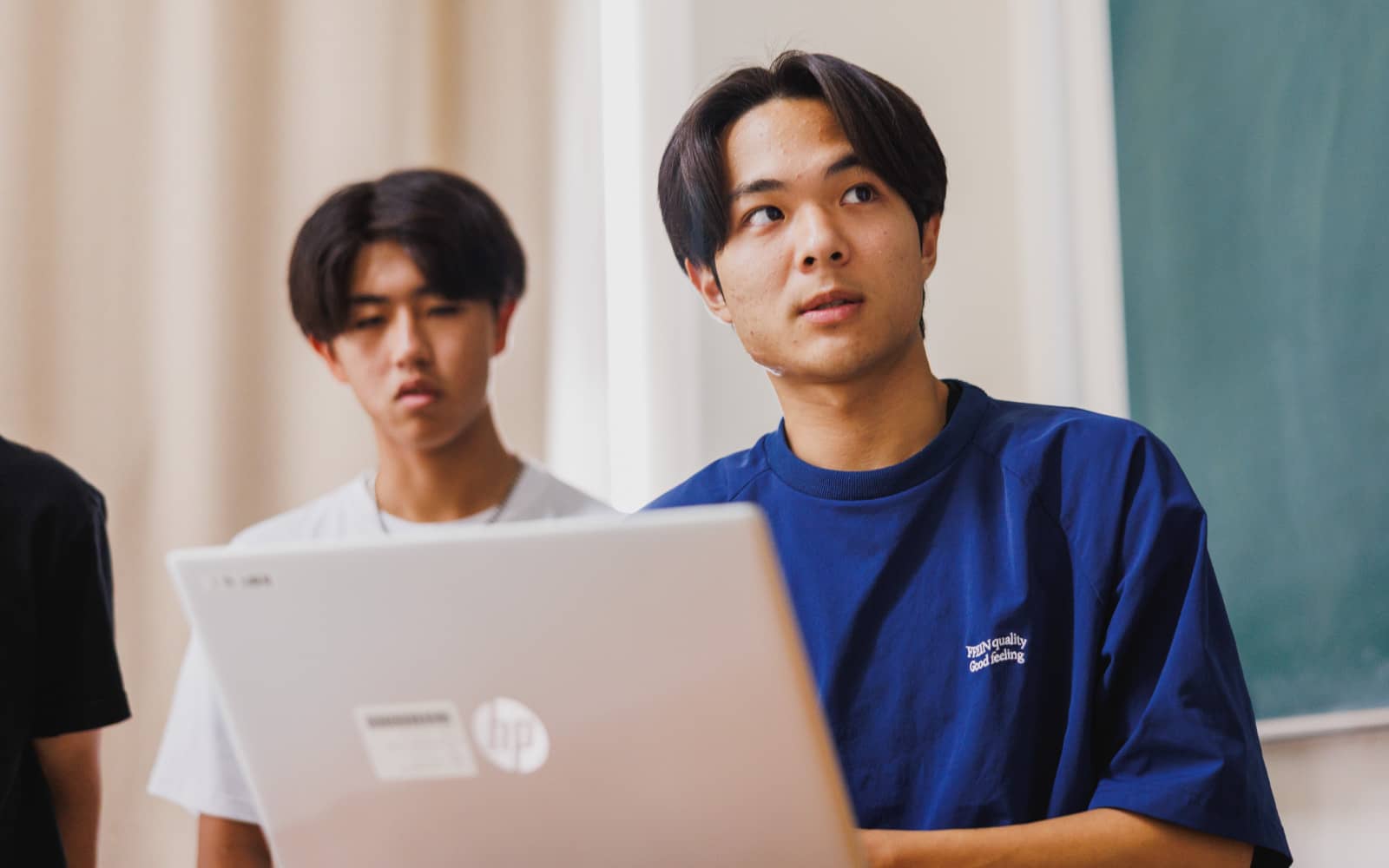 夏休み直前の暑い日、アツい想いを胸に、6つのグループが教室に集合! 先生方やHAMORUWA編集部の前で、つくったグッズを披露するプレゼンが始まりました。