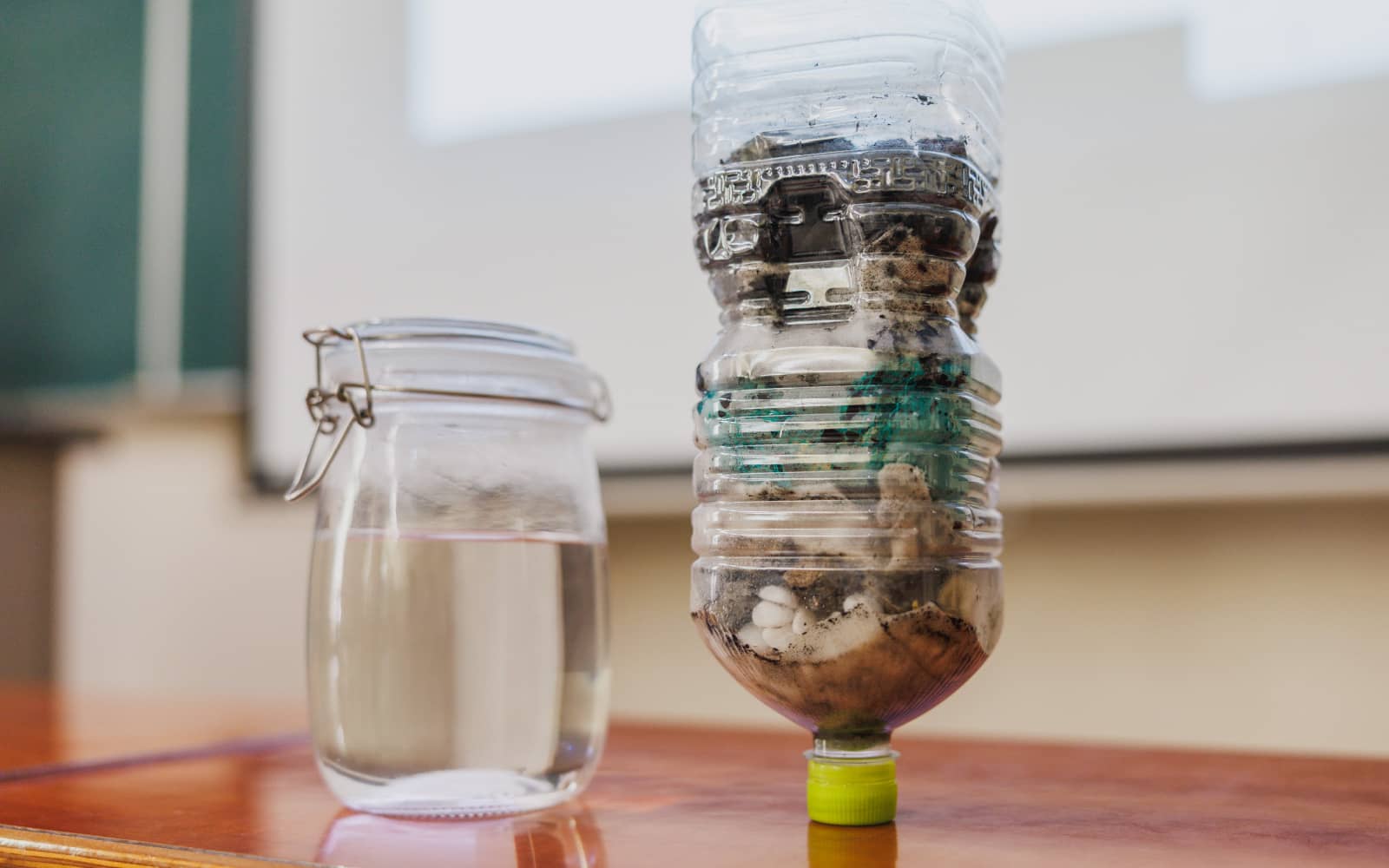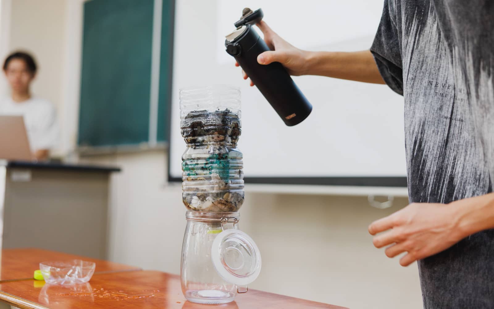 F班は、災害時にもきれいな水を使いたいという思いから、「簡単ろ過装置」を製作。災害時に直面する水の課題に、実用的なアプローチで挑みました。