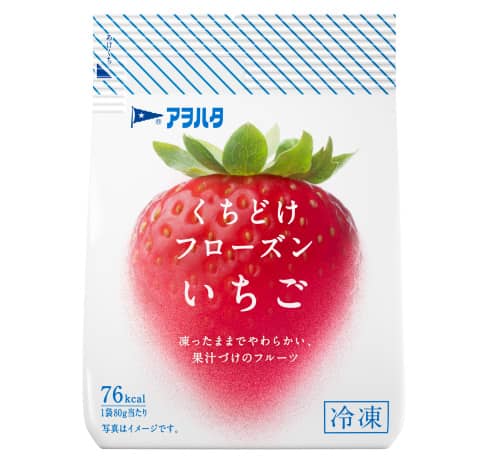- 凍ったままでもやわらかいアヲハタの独自技術「やわらかフローズン製法」でいちごを一粒ずつ凍らせた冷凍フルーツ。くちどけの良さ、果物だけの自然な甘み、香りの良さがおいしさの秘密。そのまま食べたり、氷がわりに使っても◎。