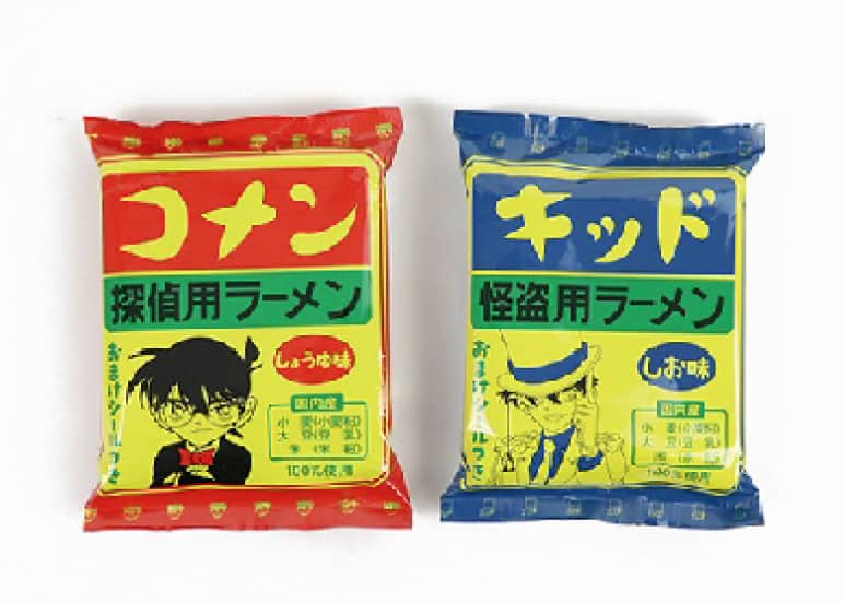 - 「探偵用ラーメン(しょうゆ味)」と「怪盗用ラーメン(しお味)」の2種類。おまけシール付きで、各3種類+シークレット1種類。頑張ってコンプリートしたい店舗限定グッズです!