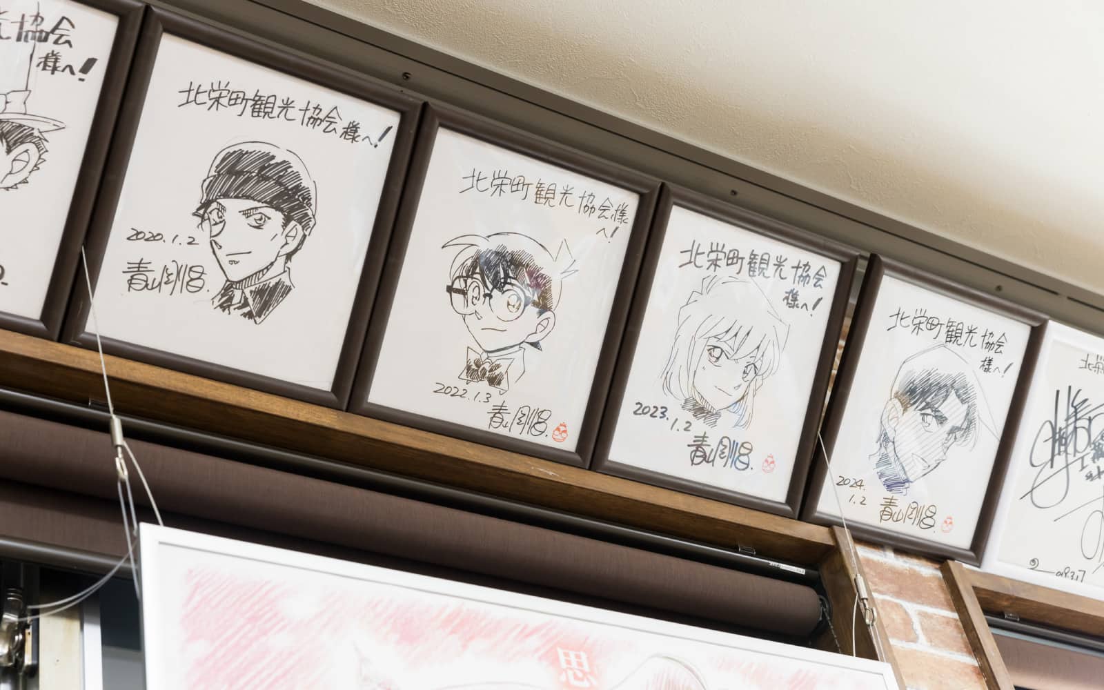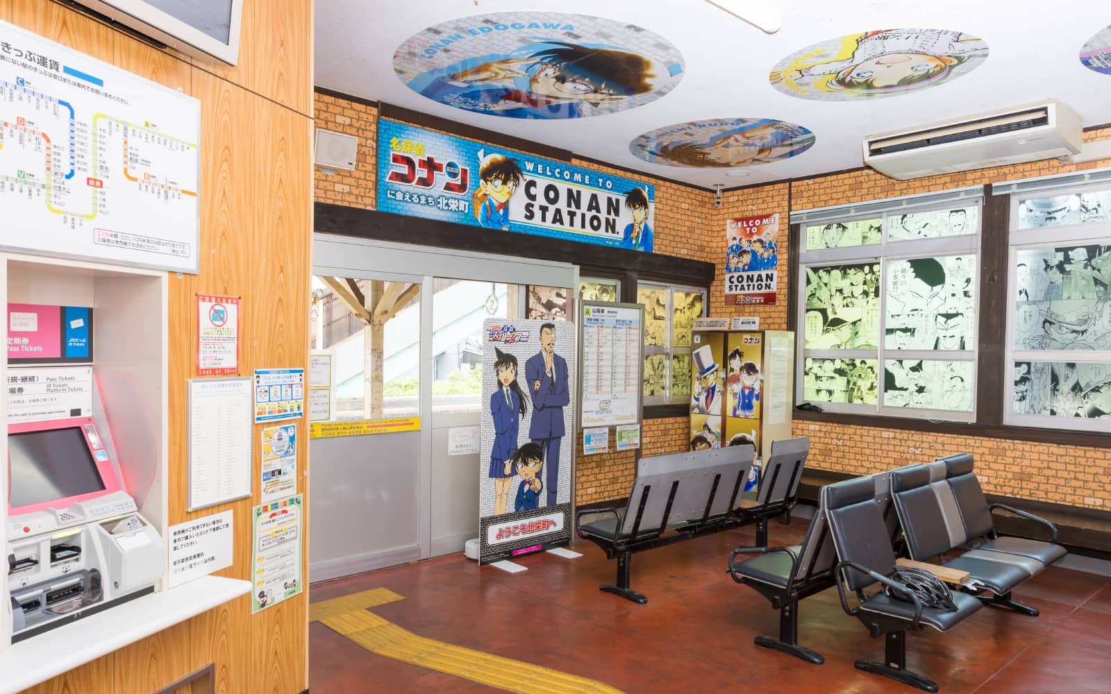 駅の待合室の窓ガラスには「名探偵コナン」の名シーンが描かれていて、天井を見上げればキャラクターたちのイラストがずらり。どこを見ても写真を撮りたくなる“360度コナン尽くし”の空間になっています! 構内の観光案内所では、青山先生や声優さんのサイン色紙をご覧いただけますし、ここでしか手に入らない限定グッズも♪旅の始まりからテンション急上昇間違いなし!