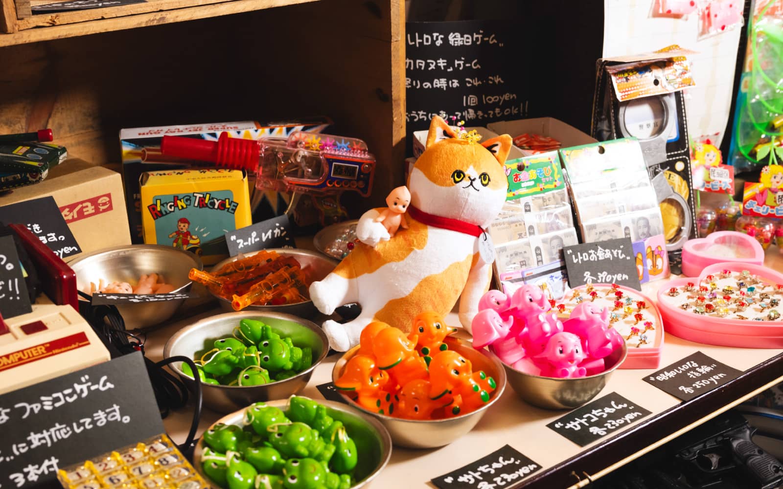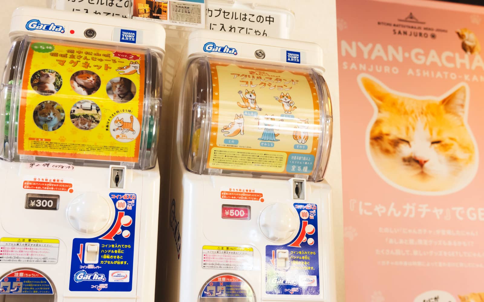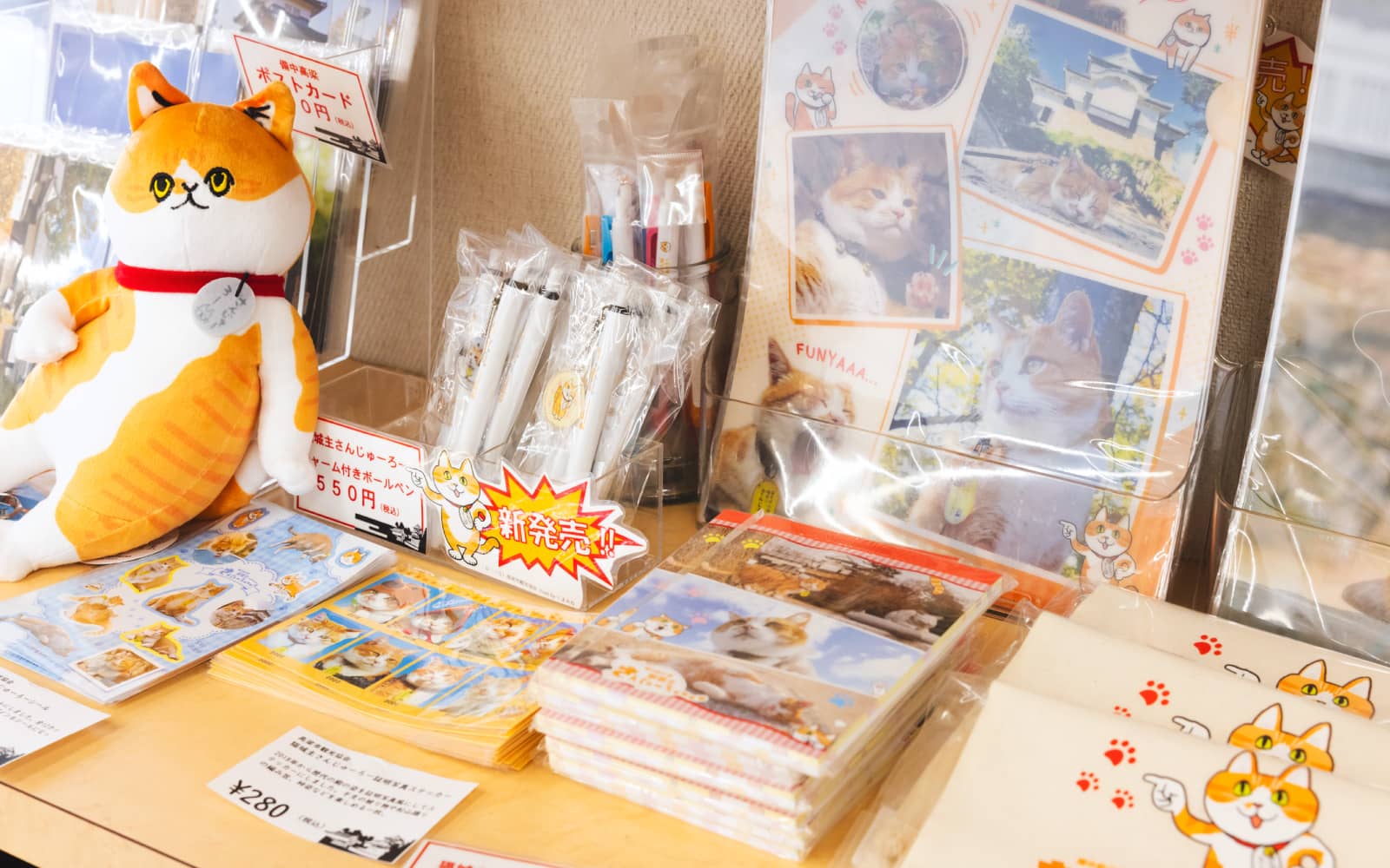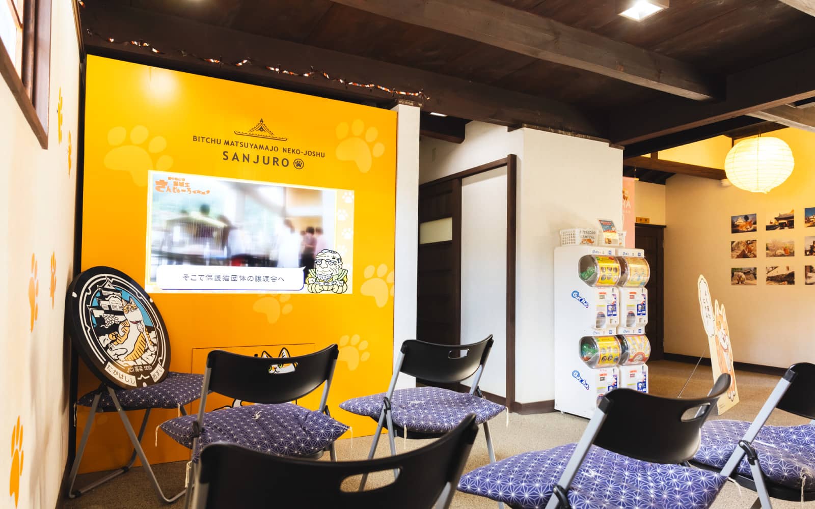 旧埴原家の敷地内にある「猫城主さんじゅーろーあしあと館」では、さんじゅーろーの歩みを写真や映像で楽しめます。ここだけのオリジナル「にゃんガチャ」など、可愛いグッズコーナーも充実。ファンはもちろん、初めて訪れる人でも思わず笑顔になれる、癒やしのスポットです。